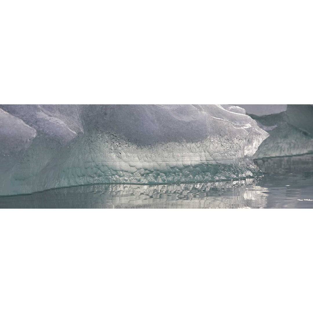 In this stunning photograph, the mesmerizing texture of clear ice from Svalbard is captured in exquisite detail. The delicate interplay of light and shadows brings out the intricate patterns and hues of the ice, creating a scene that feels both timeless and fragile. Imagine this captivating landscape bringing a touch of Arctic wonder to your wall, an ever-present reminder of nature's beauty and power.