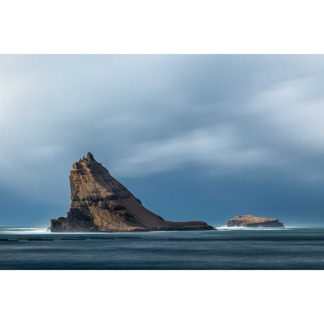 Tindholmur is one of the iconic islets of the Faroe Islands, known for its unique shape and steep slopes. Rising to several hundred feet on one side and dropping sharply on the other, it offers a dramatic profile. Perfect for those who appreciate nature's extraordinary creations, this piece invites you to explore its details and beauty.