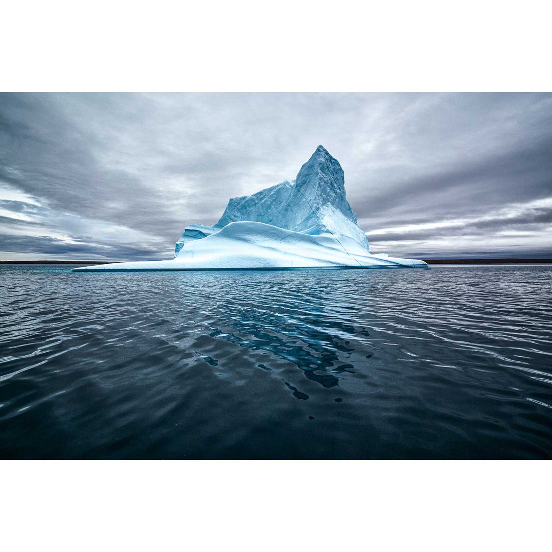 This stunning photograph captures the majesty of an iceberg in the Scoresby Sound fjord system, where the icy blue contrasts beautifully against the stormy sky. The serene water reflects the iceberg's grandeur, inviting the viewer to imagine the cool, crisp air of this remote location. Imagine how this captivating piece could transform your space, adding a touch of the majestic Arctic to your wall.