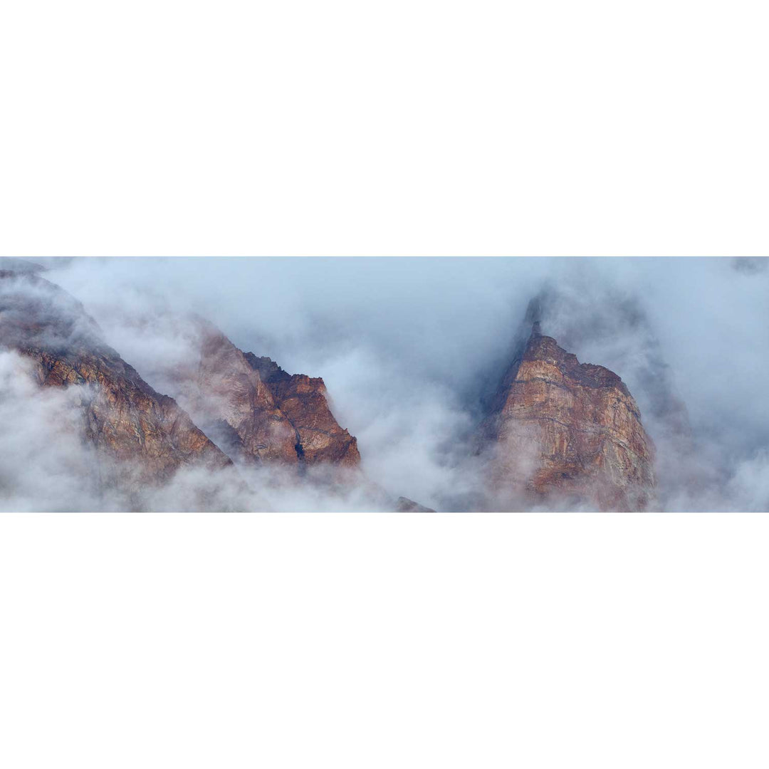 The dramatic peaks of Øfjord emerge mysteriously from the swirling mists, creating an ethereal scene that captivates the senses. The interplay of light and shadow on the rugged mountain faces provides a striking contrast to the soft, enveloping fog. This enchanting composition invites viewers to imagine the serene silence and raw beauty of Greenland's landscape. Envision how this captivating print will transform your space, adding a touch of wonder and tranquility.