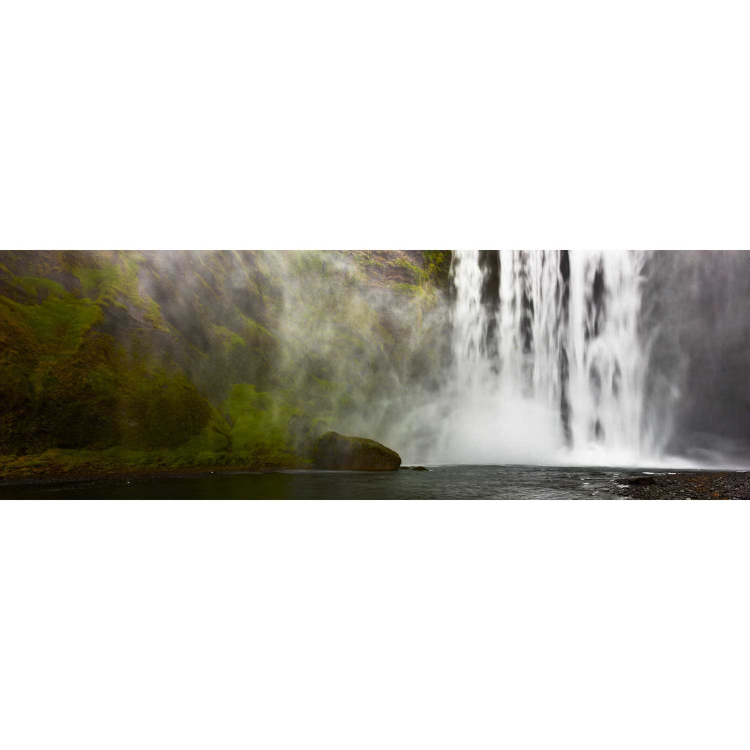 The power of Skógafoss is captivating, as the water cascades down a lush cliff, filling the air with mist and magic. The green moss on the rocks contrasts beautifully with the white rush of water, creating a serene landscape that draws you in. Imagine this waterfall's presence in your space, bringing a sense of natural wonder and tranquility into your home.