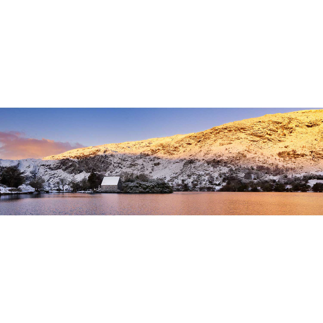 This was a fine morning - almost too fine for photography. The cloud on the left of this image vanished entirely shortly afterwards leaving clear blue skies and rather flat light. Here I've used the shadow of the mountain behind me to create some interesting geometric divisions in the image, and the wonderful dawn light turns the snow a vibrant orange-yellow.