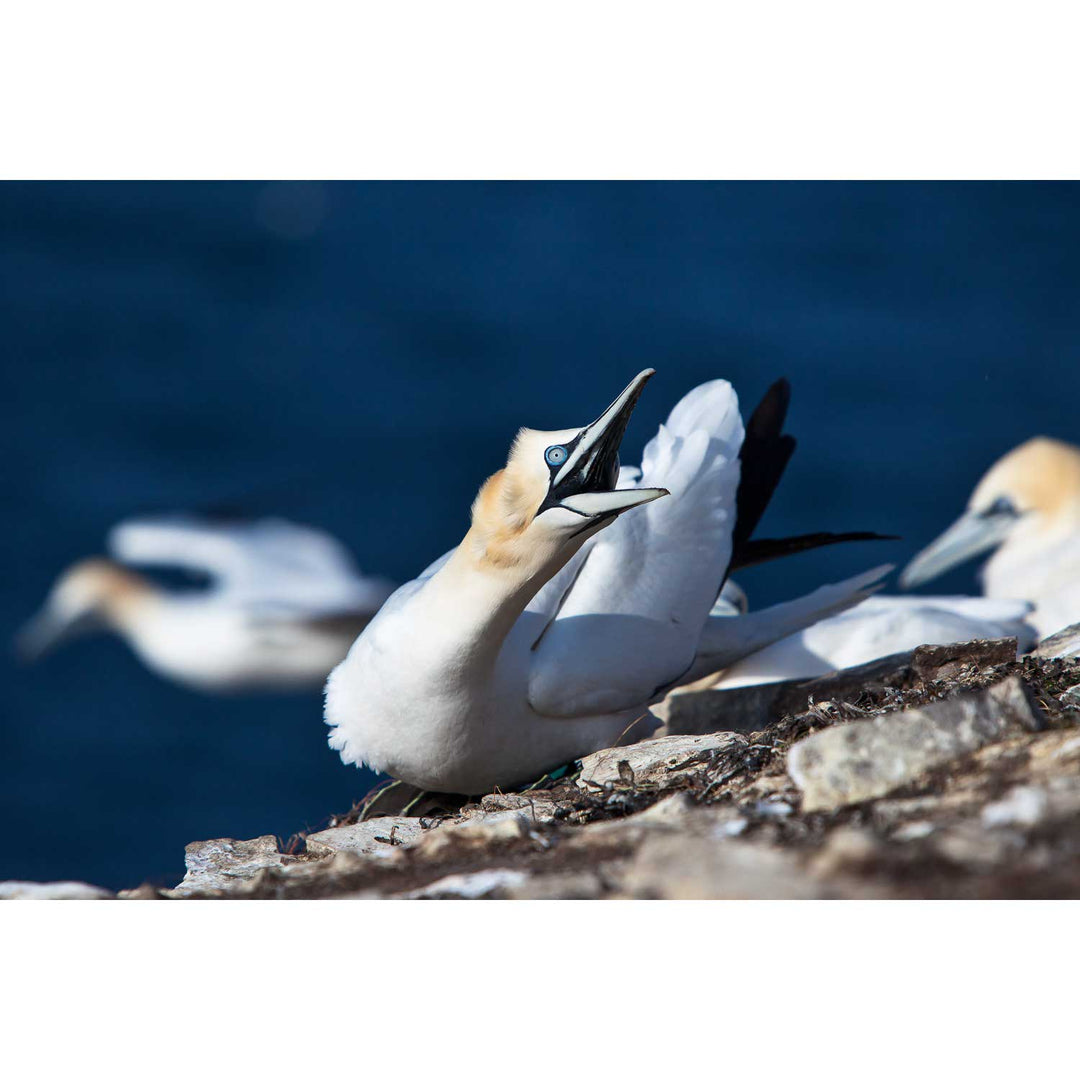 A gannet hisses its displeasure at a rival on the Bull Rock.