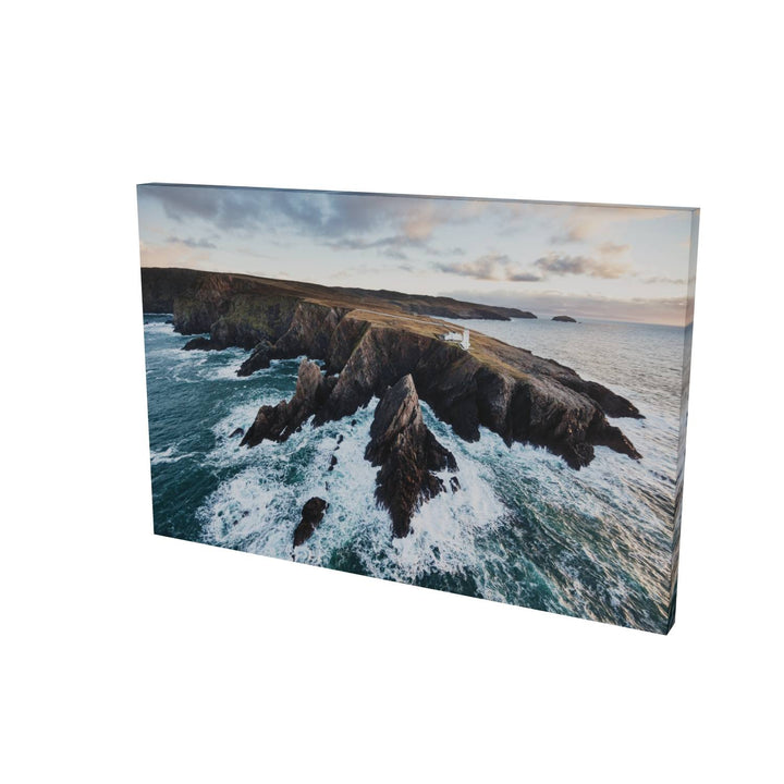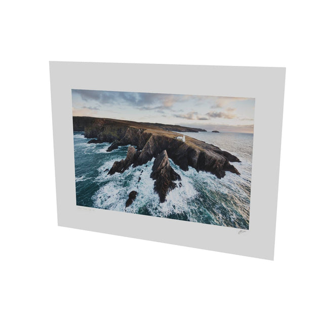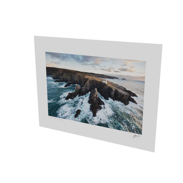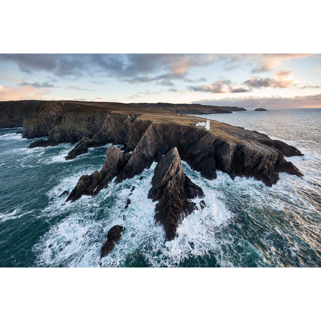 Aranmore lighthouse perches precariously above the shattered rocks of its headland.