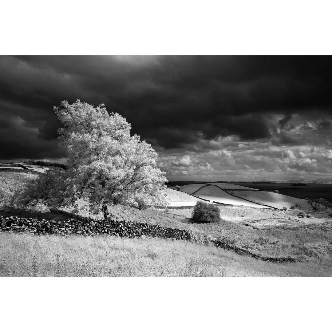 An infrared photograph, the approaching rainclouds set a wonderful mood as the stone wall beneath the tree leads you through the patchwork of fields towards Lough Corrib. Five minutes after making this image, I was soaking wet.