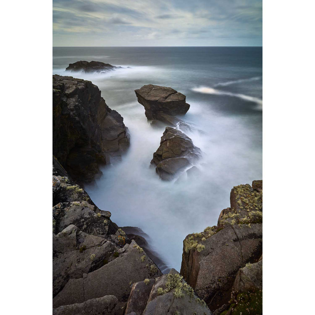 The sea stacks around the blowhole at Dún na mBó are not large, but are some of the most dramatic around the Irish coast.
