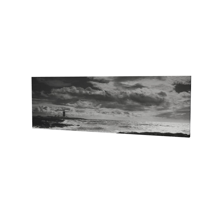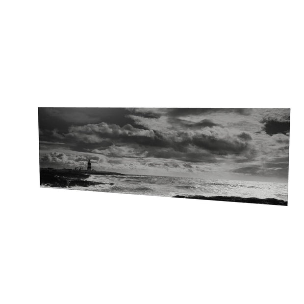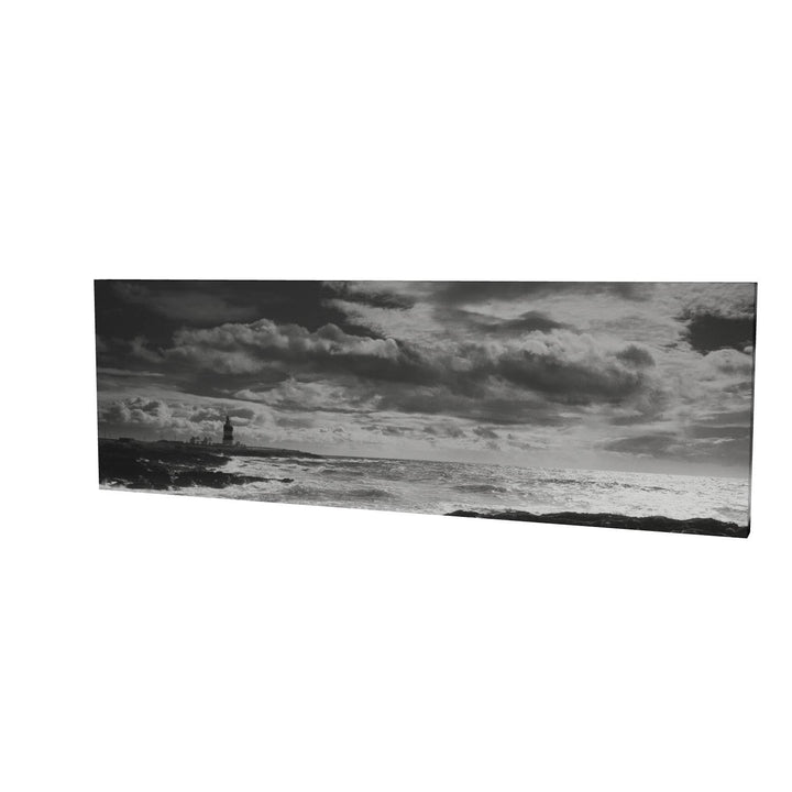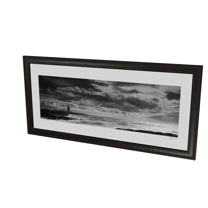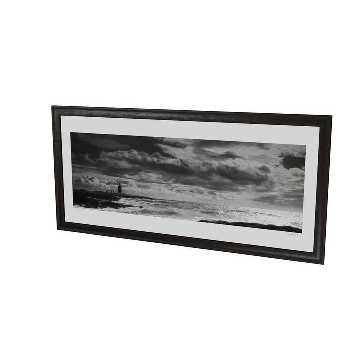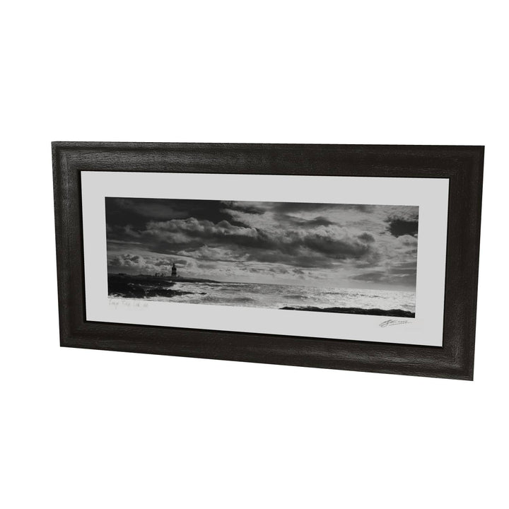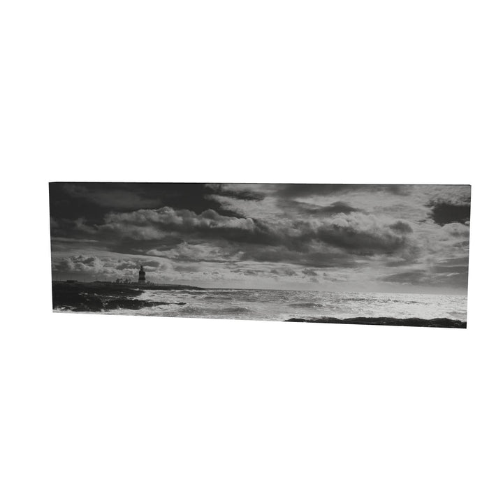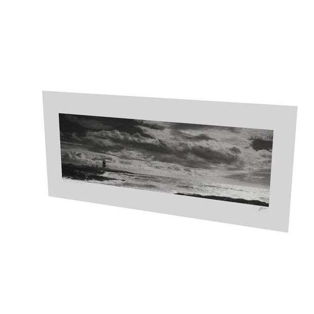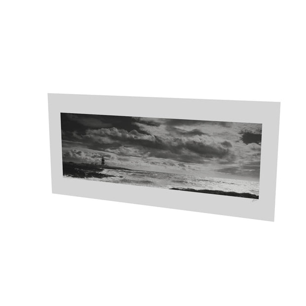 In this dramatic black and white photograph, the rugged beauty of Hook Head is powerfully captured. The sea, wild and untamed, stretches out beneath a brooding sky filled with swirling clouds. The distant lighthouse stands resolute against the elements, a timeless sentinel on the horizon. Imagine how this evocative scene could enhance your living space, bringing the raw essence of the Irish coastline into your home.