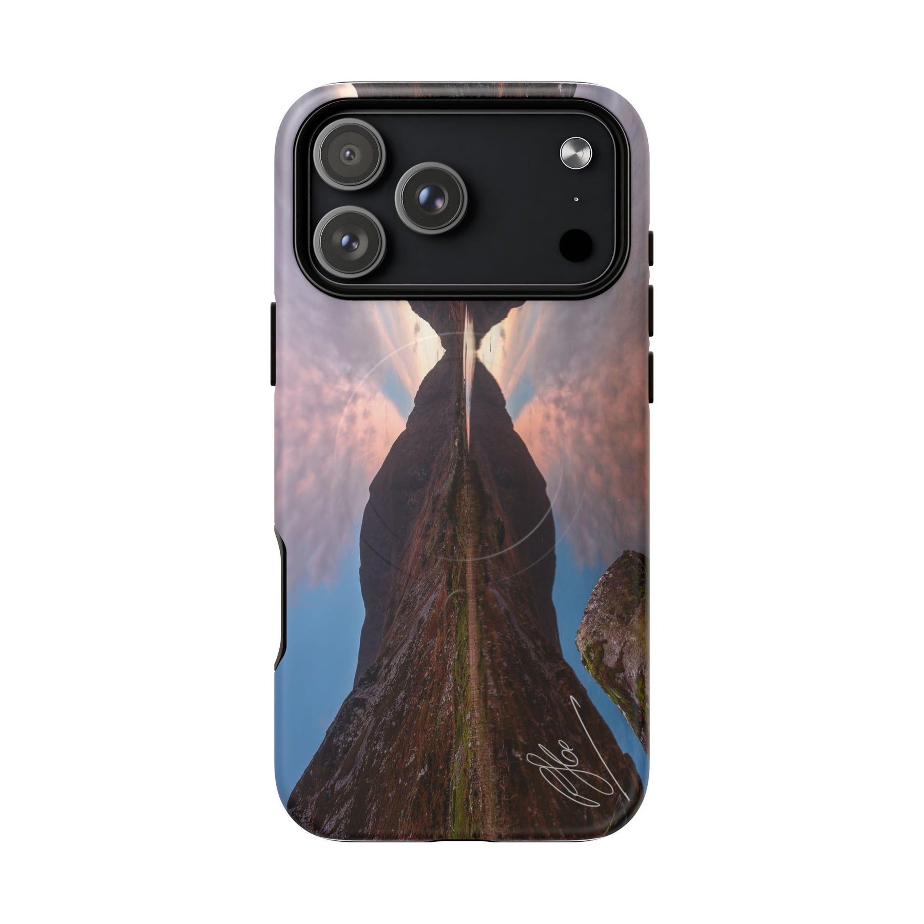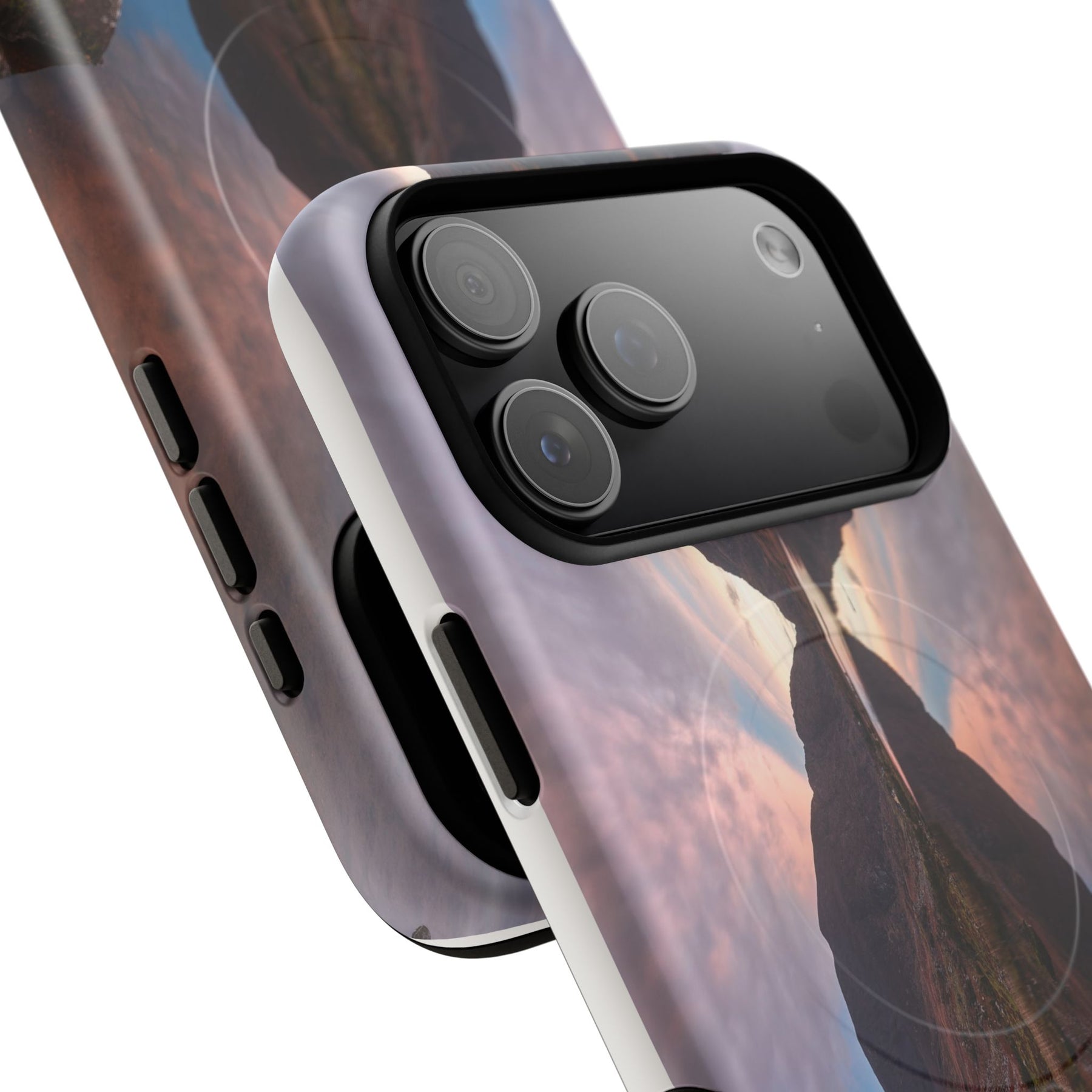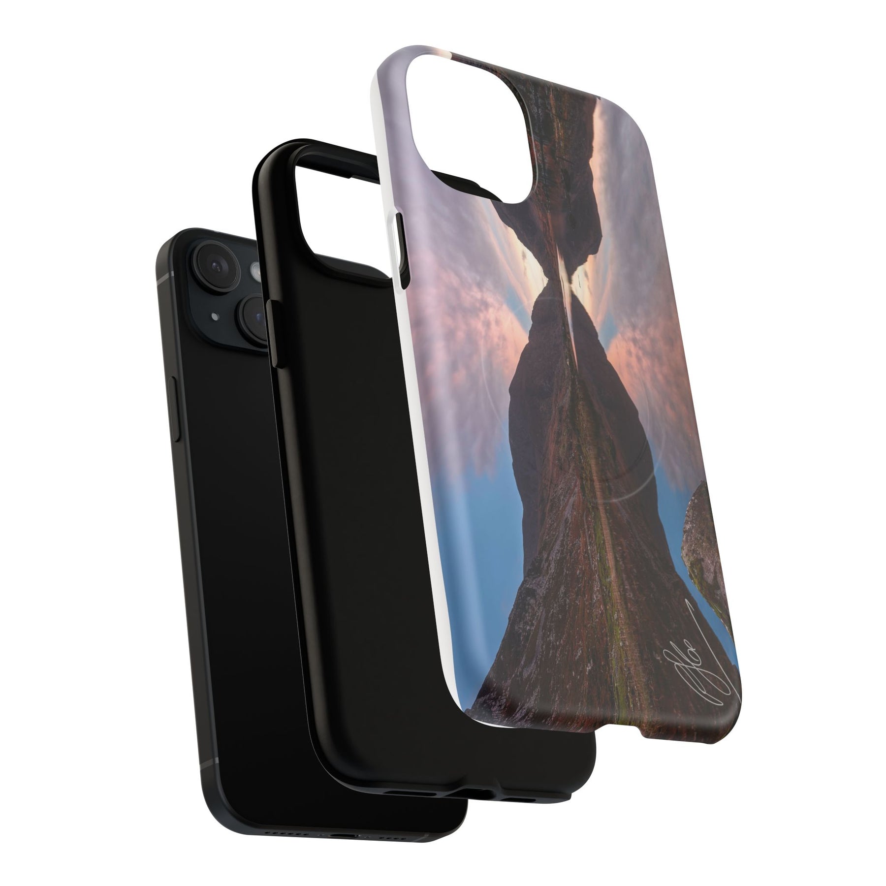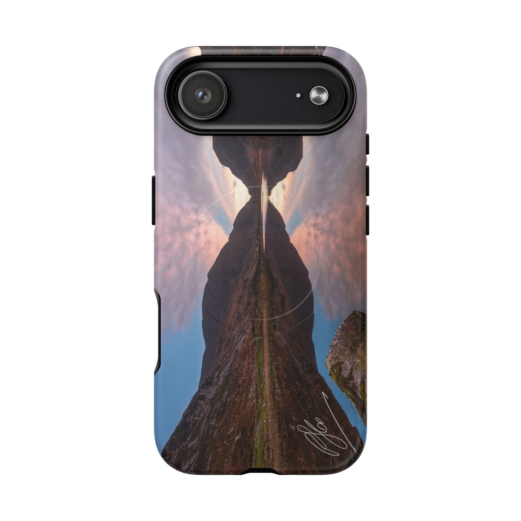 Each case is built with a dual-layer design: a soft, rubberized interior for shock absorption, and a hard outer shell that carries the printed landscape in crisp detail. Still slim enough to sit comfortably in the hand—form, function, and beauty in balance. iPhone cases are MagSafe-compatible.