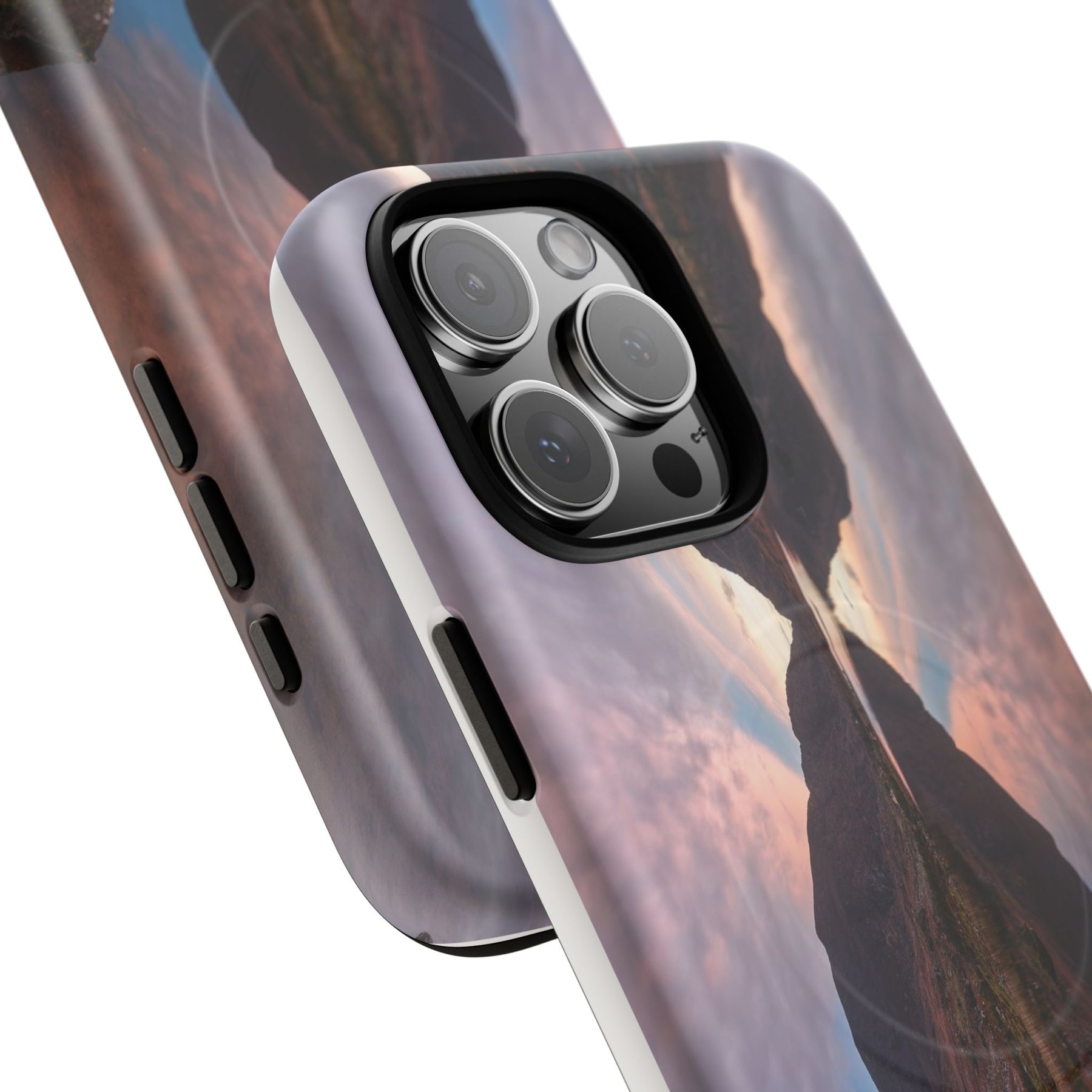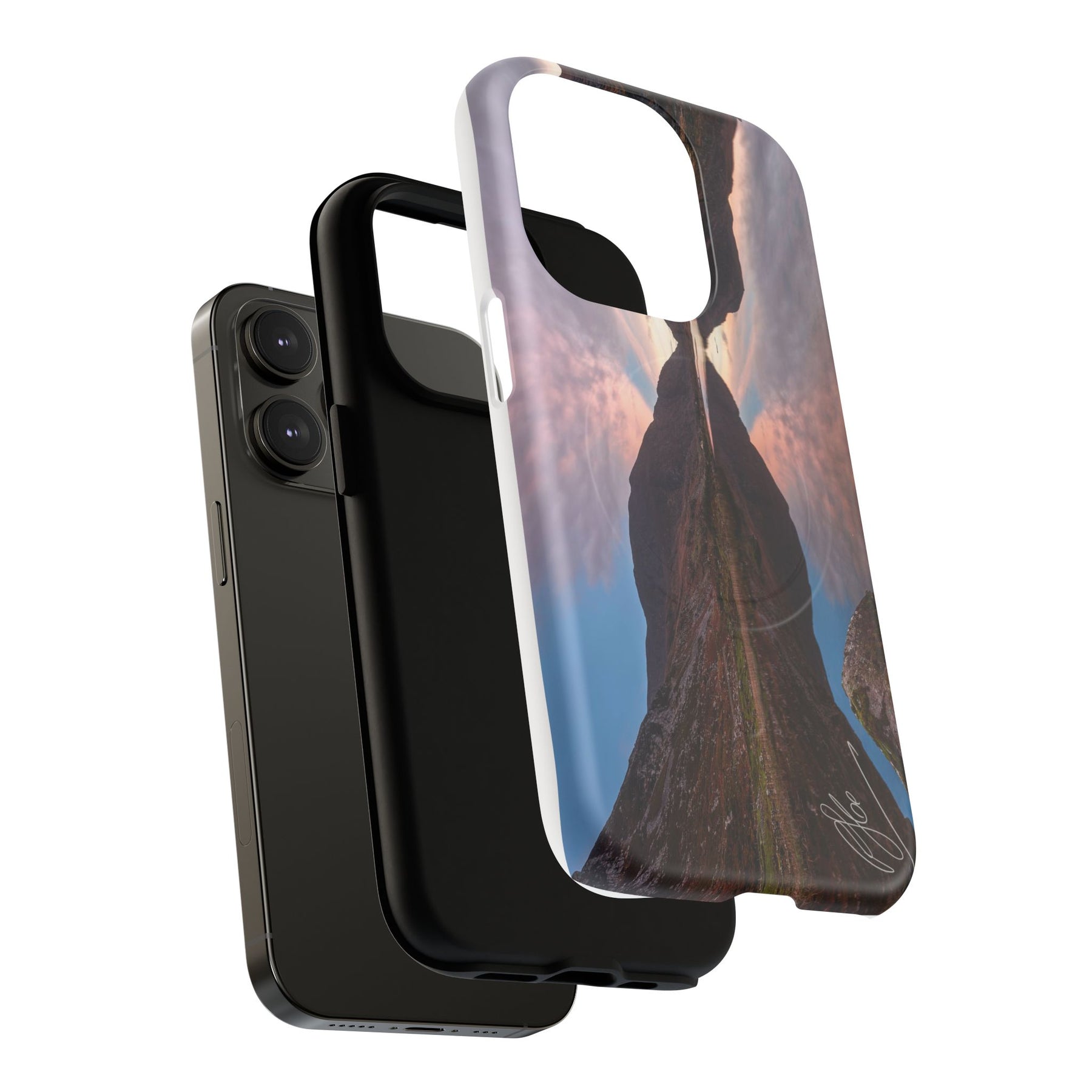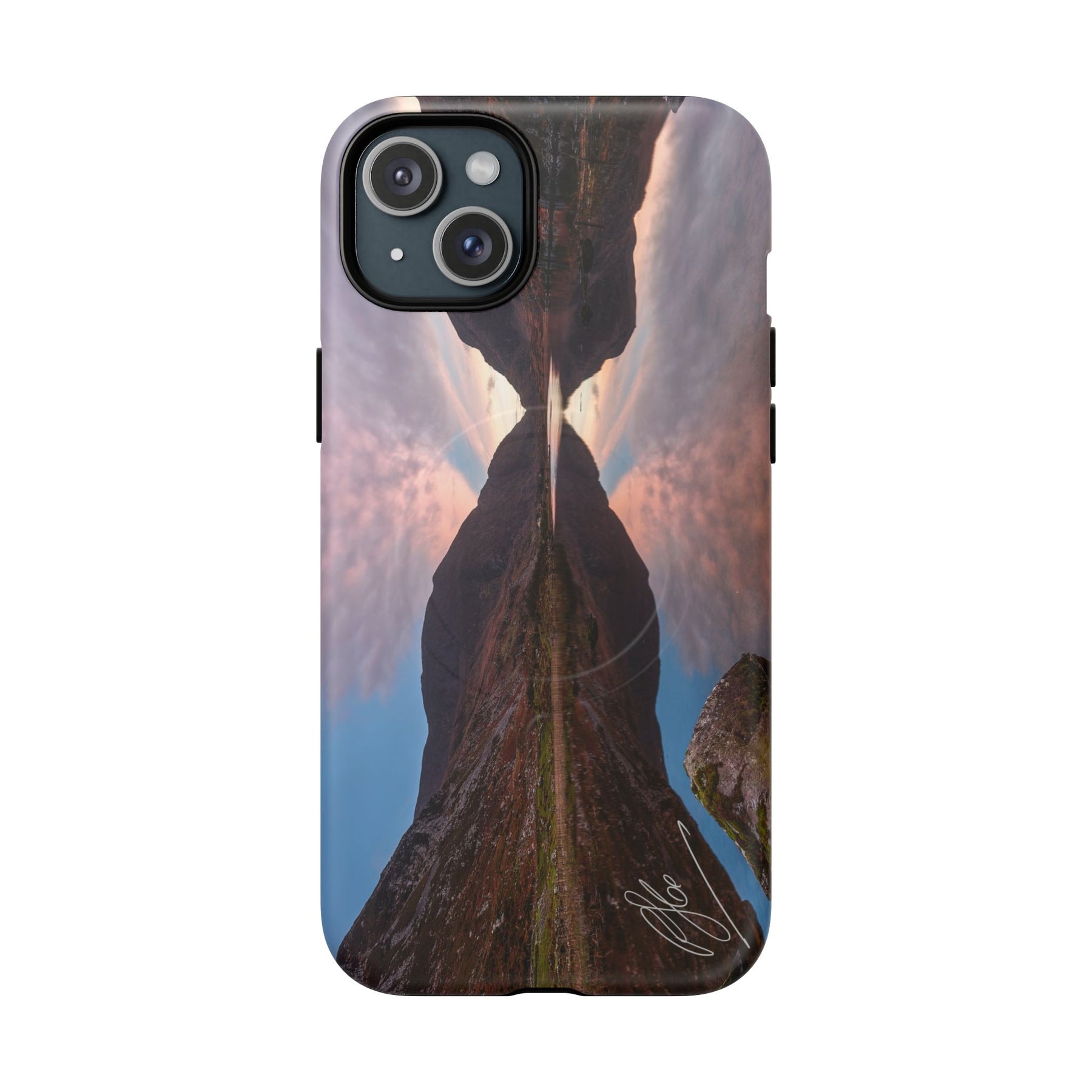 Each case is built with a dual-layer design: a soft, rubberized interior for shock absorption, and a hard outer shell that carries the printed landscape in crisp detail. Still slim enough to sit comfortably in the hand—form, function, and beauty in balance. iPhone cases are MagSafe-compatible.