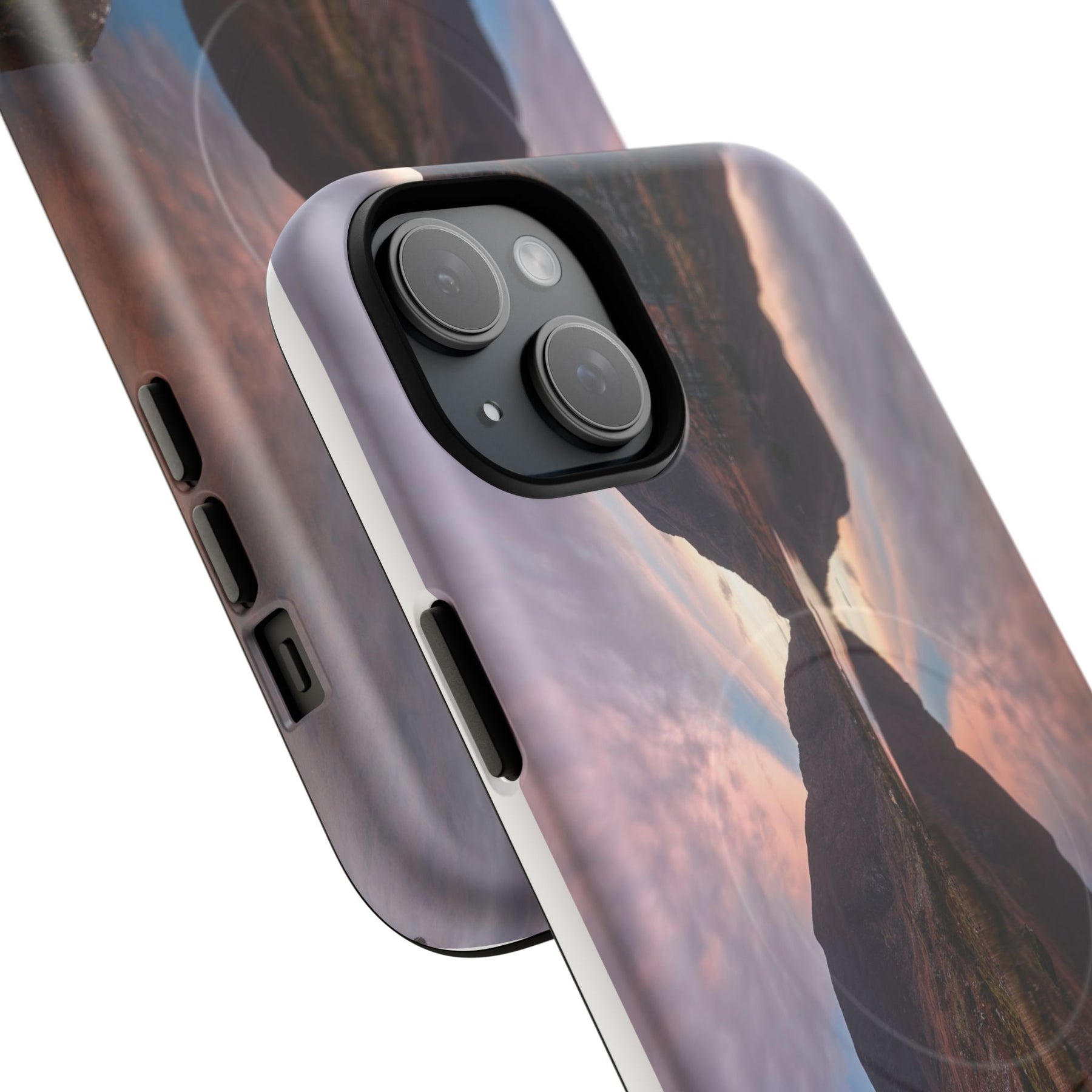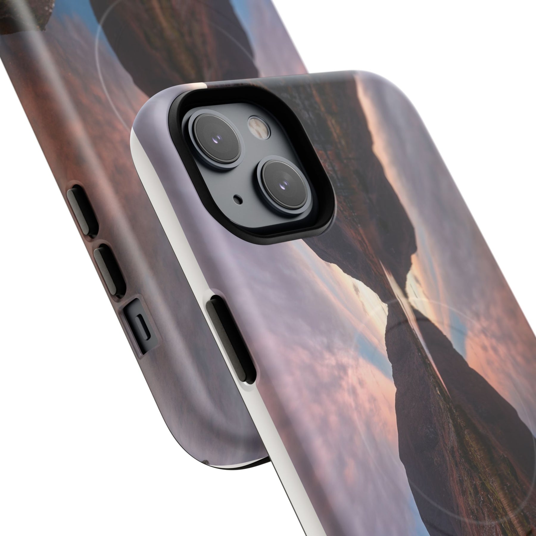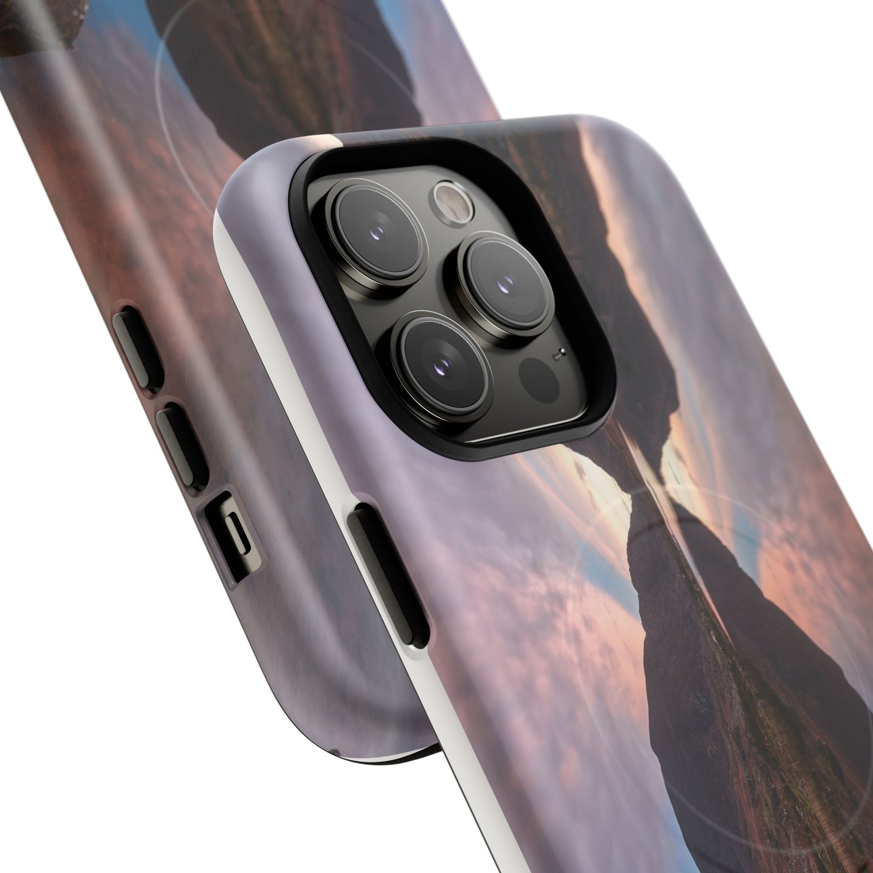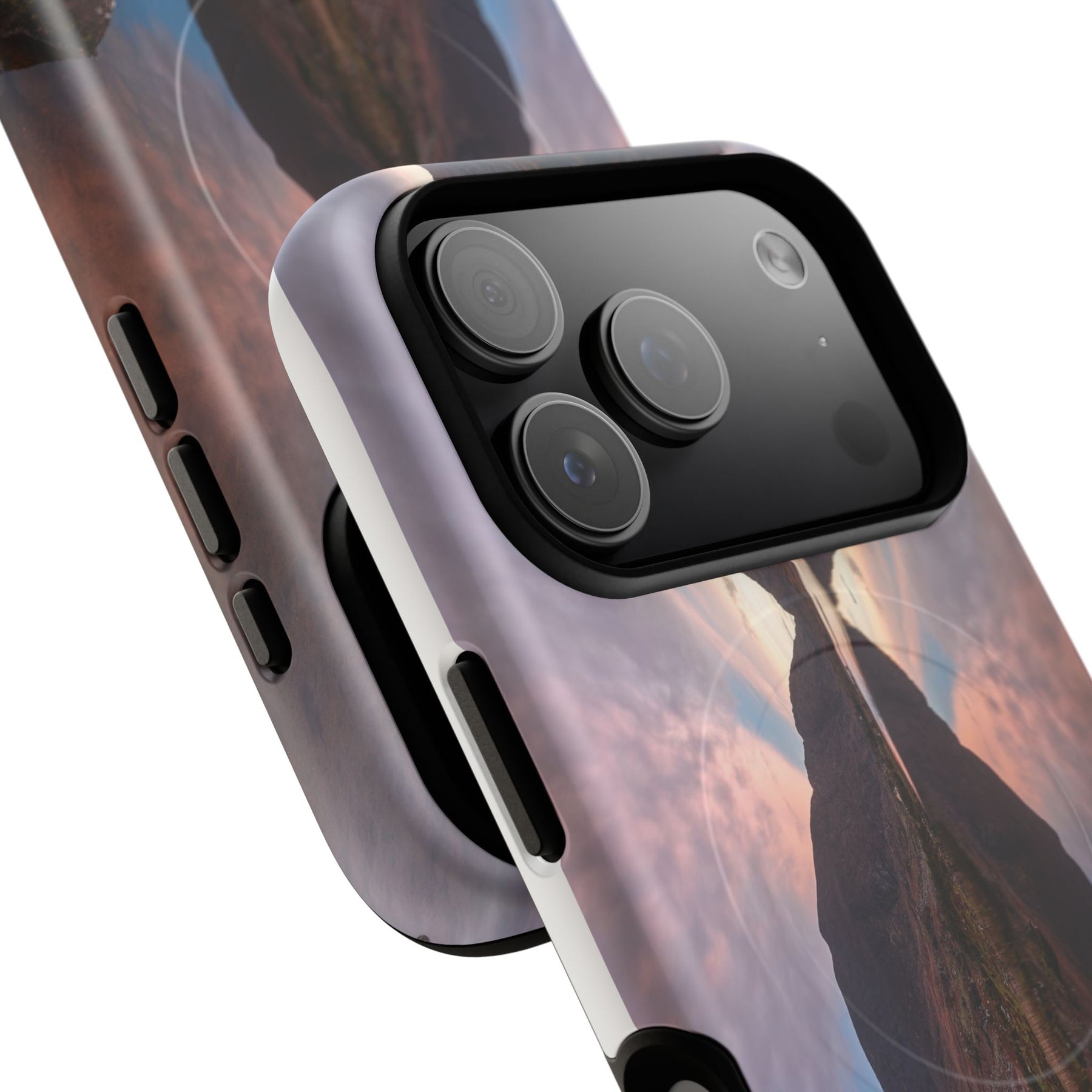 Each case is built with a dual-layer design: a soft, rubberized interior for shock absorption, and a hard outer shell that carries the printed landscape in crisp detail. Still slim enough to sit comfortably in the hand—form, function, and beauty in balance. iPhone cases are MagSafe-compatible.