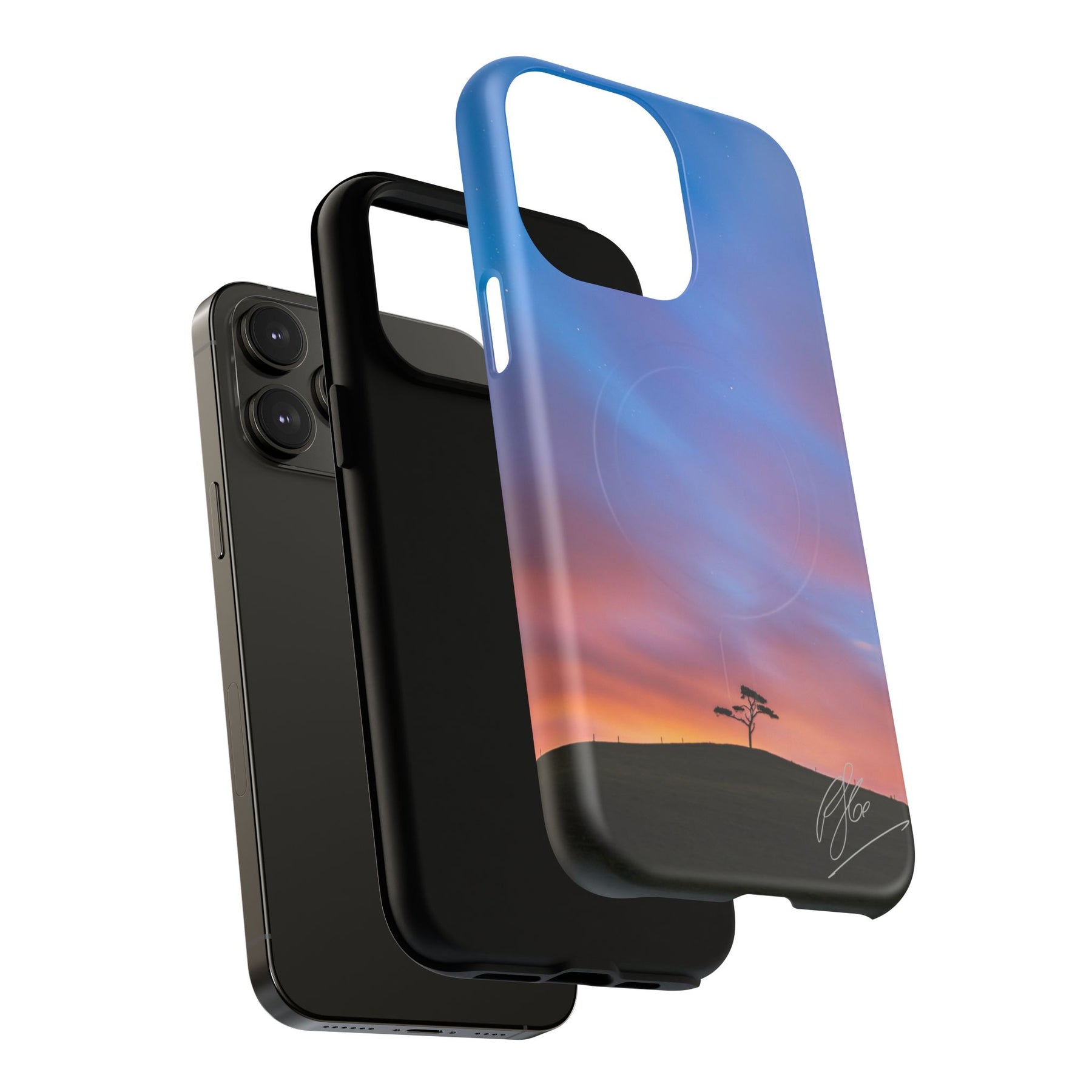 Each case is built with a dual-layer design: a soft, rubberized interior for shock absorption, and a hard outer shell that carries the printed landscape in crisp detail. Still slim enough to sit comfortably in the hand—form, function, and beauty in balance. iPhone cases are MagSafe-compatible.