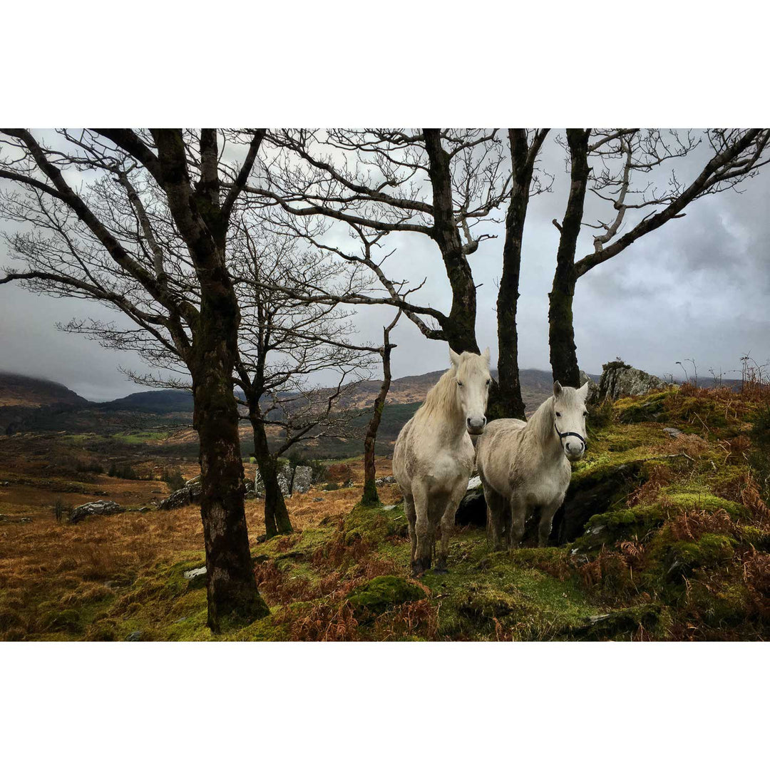 A pair of ponies take in the view on a blustery day near Gougane Barra.