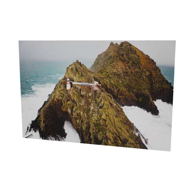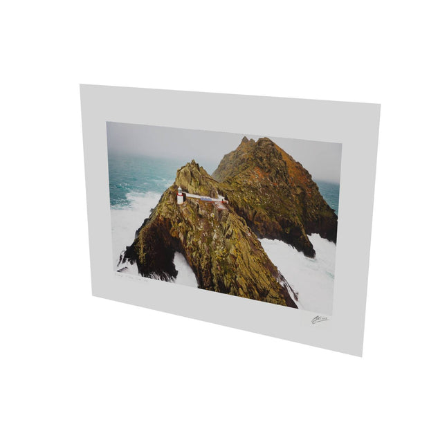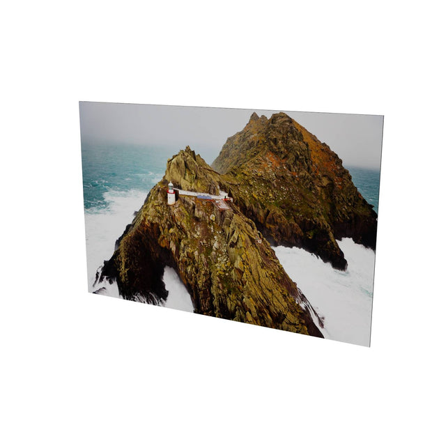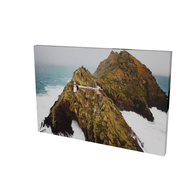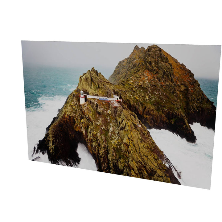 The island is a pair of jagged, steep-sided pyramids reaching a maximum height of 656 feet above the sea. Joining them is a saddle pierced by a natural tunnel. The light itself is at a height of 275 feet on top of a 55 foot tower.