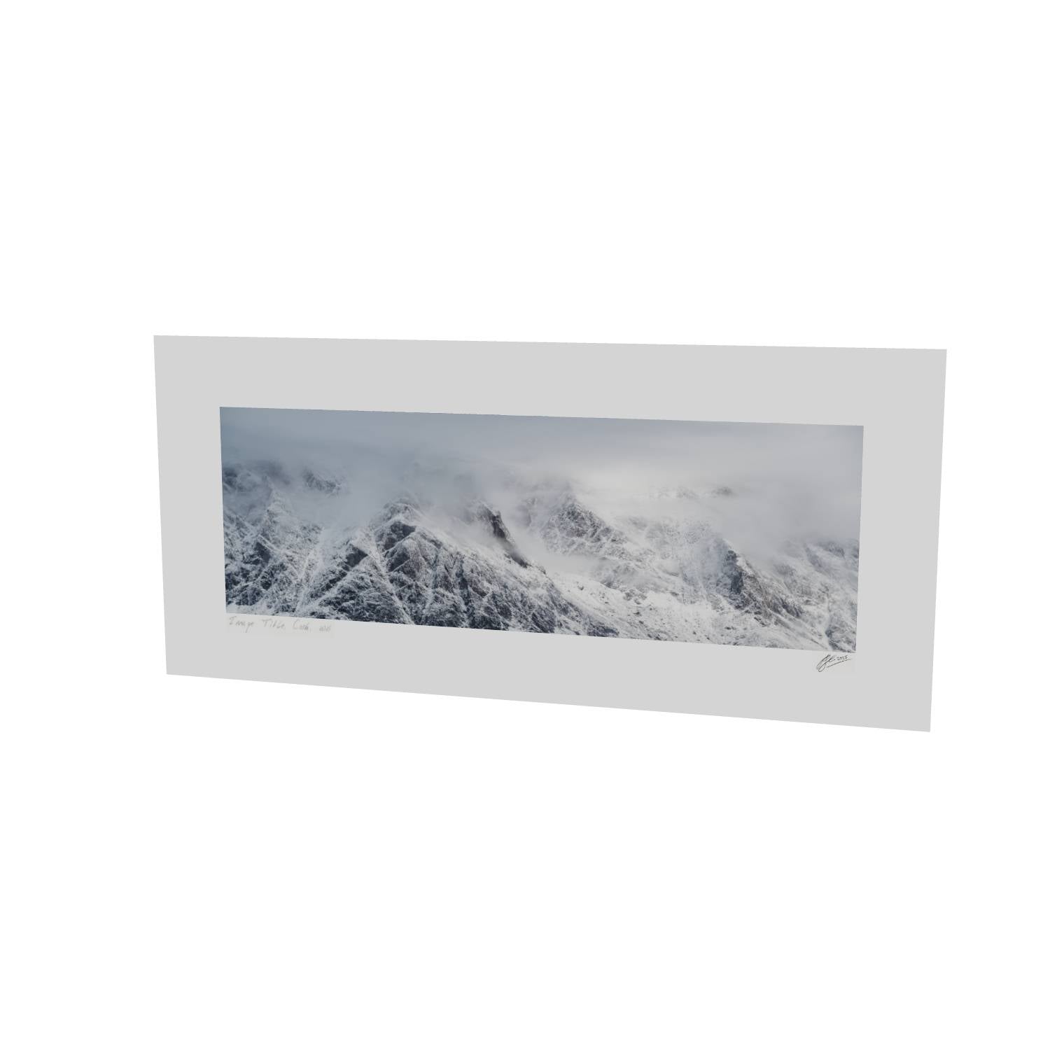 This photograph captures the raw power of Greenland's eastern coast, where sharp mountain peaks emerge through swirling cloud and winter weather. The monochromatic palette of snow-covered rock and mist creates a study in texture and form, revealing the ancient geology that defines this remote Arctic landscape. The interplay between solid mountain and ephemeral cloud speaks to the constant transformation of these polar environments. This fine art print brings the dramatic character of Greenland's wilderness into your space. While my work typically focuses on Irish landscapes, this Arctic photograph offers a glimpse into one of Earth's most untouched regions. Perfect for those drawn to mountain photography, minimalist landscapes, or the stark beauty of polar environments, this limited edition print adds a sense of scale and quiet intensity to any wall.