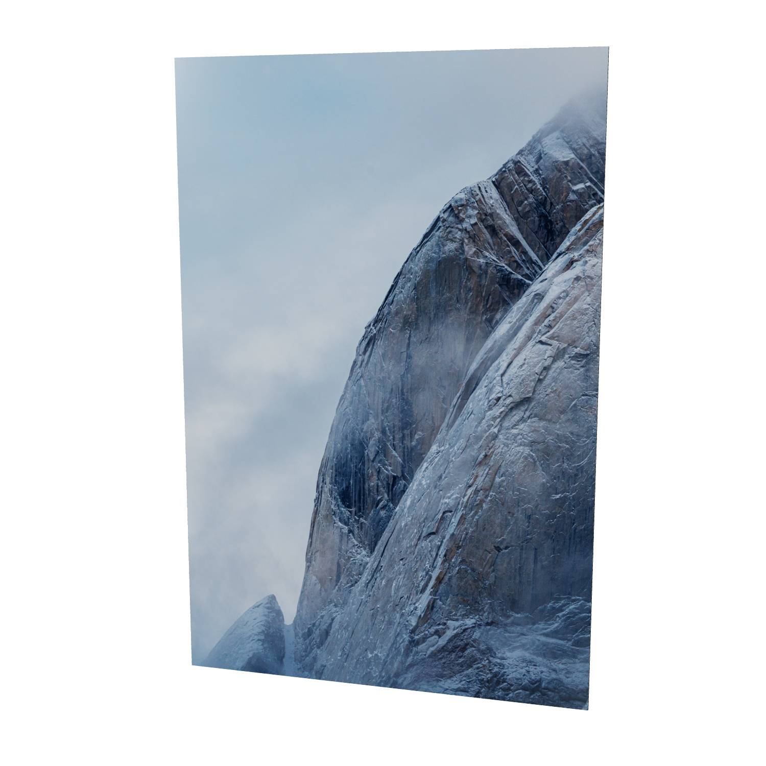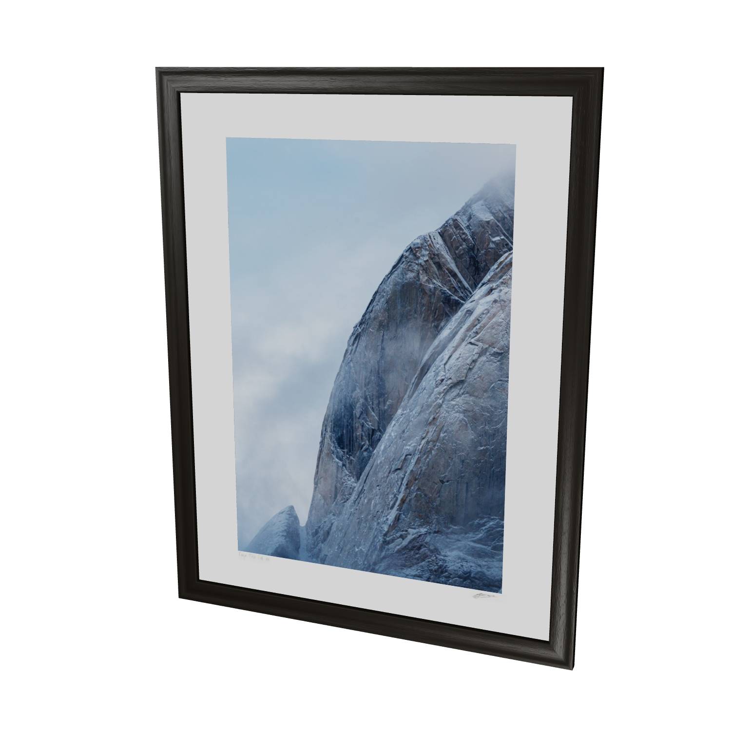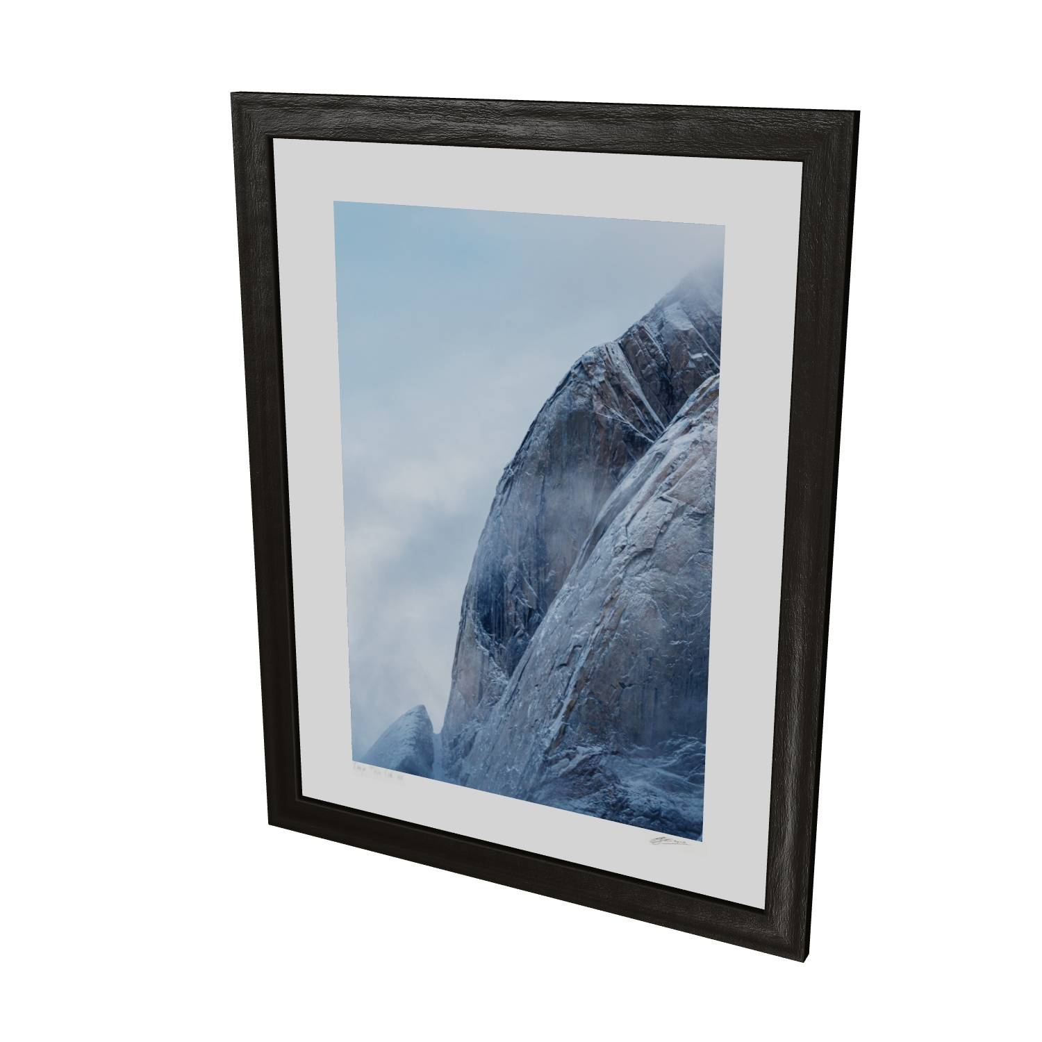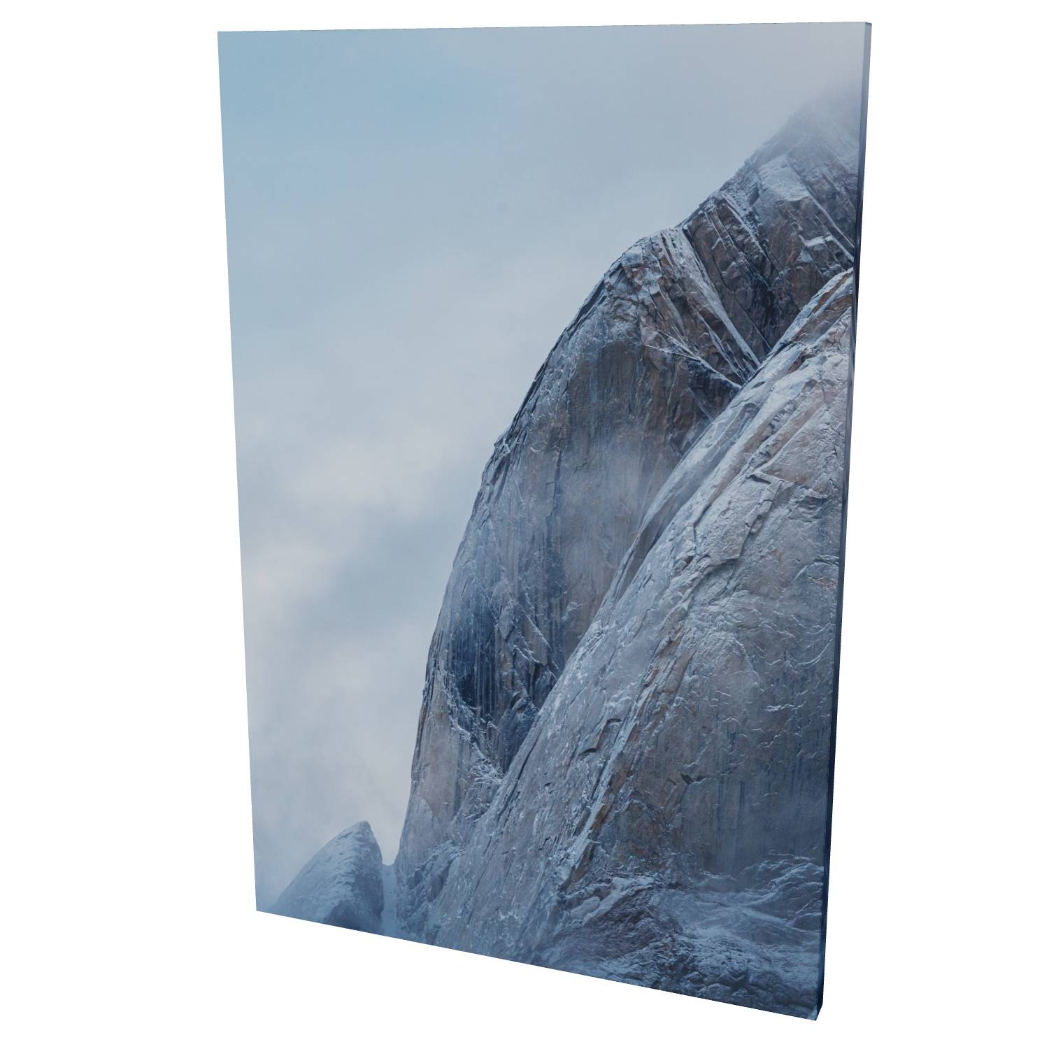 There's something humbling about standing before a mountain wall that disappears into the clouds above you. This granite face in Scoresby Sund, Greenland rises with an almost impossible verticality—every crack and crevice etched by millennia of ice and weather. The frost clinging to the rock and the mist rolling past give the scene a quiet intensity that's hard to shake. This fine art print captures the raw scale and texture of one of Greenland's remote fjord landscapes. The cool blue-grey tones and the interplay of light on ancient stone make it a striking piece for anyone drawn to mountain photography, Arctic wilderness, or dramatic landscape wall art.