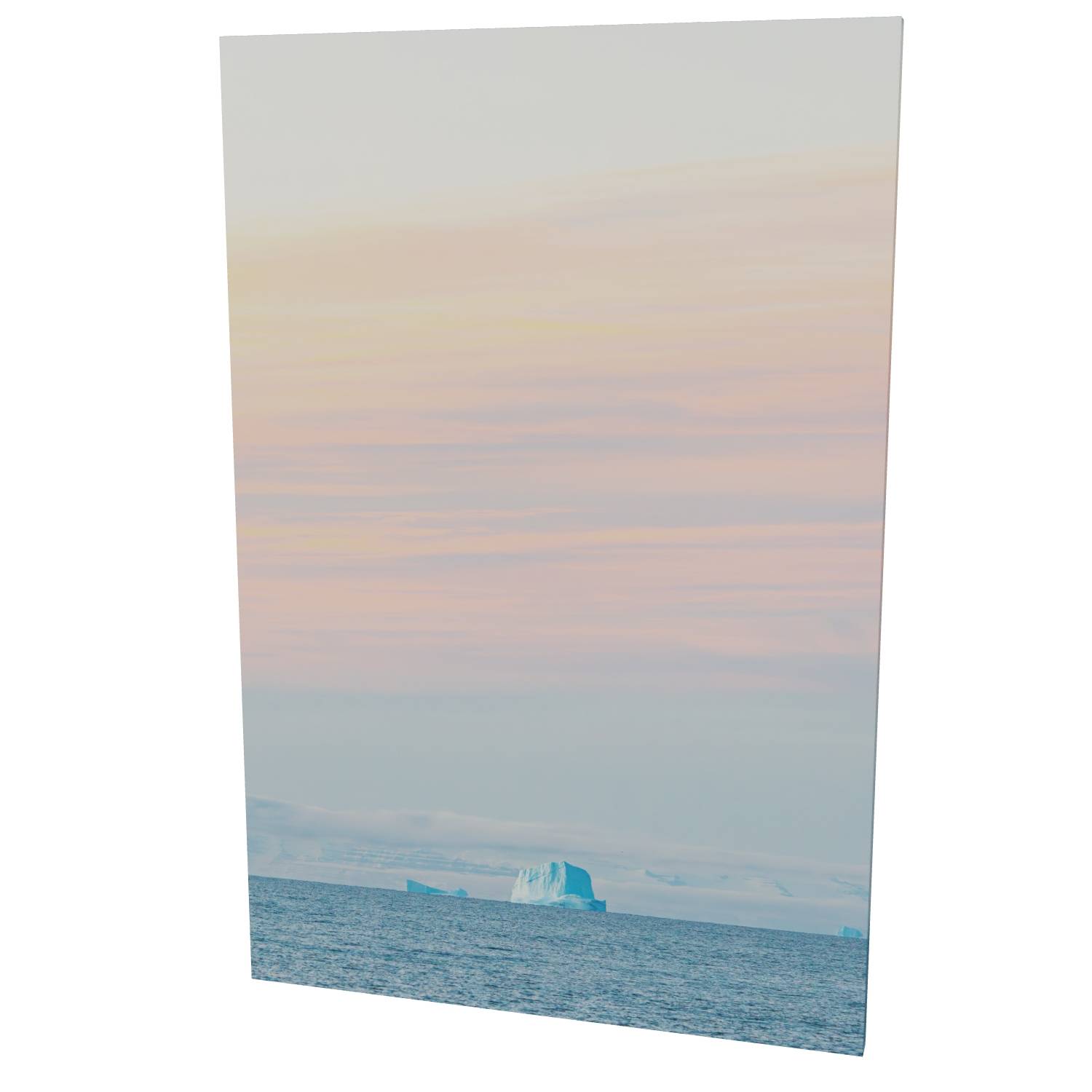 A lone iceberg sits on the horizon beneath a wash of soft pinks and blues in Scoresby Sund, Greenland. There's a quietness to this image—the kind of stillness you only find in the most remote corners of the world. The pastel tones of the Arctic sky give way to the cool blue of the ice, a small but commanding presence against the vast expanse of sea and sky. This minimalist Arctic landscape print brings a sense of calm and space to any room. The soft colour palette works well in modern interiors, and the composition draws the eye without overwhelming. A piece for those who appreciate the beauty of wild, far-flung places.