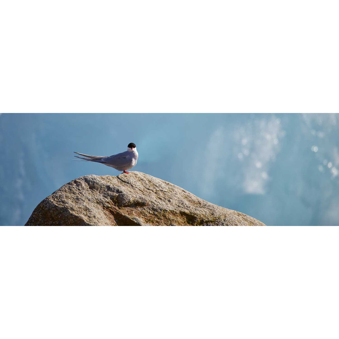 In this captivating photograph, an arctic tern perches gracefully on a rugged rock, poised against a backdrop of shimmering ice. The bird’s striking silhouette draws the eye, embodying the simplicity and raw beauty of the Arctic landscape. Imagine this serene moment captured perfectly in your home, where it invites quiet reflection and adds a touch of wilderness to your space.