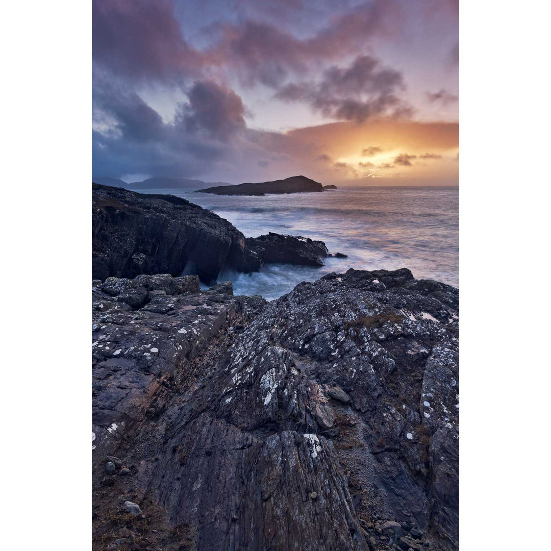 Kilcatherine is one of the hidden jewels of the Beara, itself an under-appreciated gem of the south-west of Ireland. This photograph from Kilcatherine Point looking west to Inishfarnard shows the rugged beauty of this area. It was a day where the forecast was bad enough to make you want to curl up by the fire and forget the outside world exists, but I ventured out and was rewarded with this wonderful sunset.