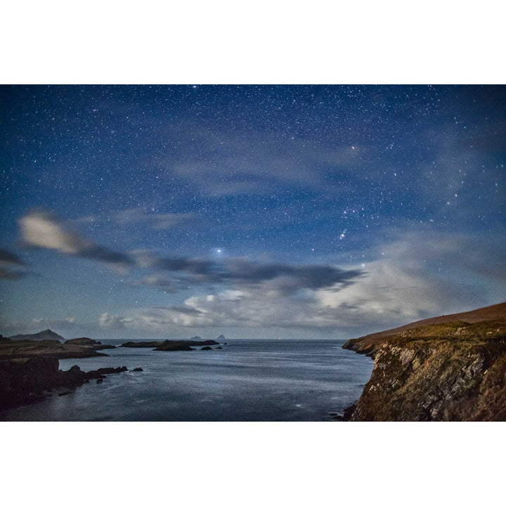 Combining the beauty of a dark sky with a dramatic landscape is a real joy for me. So, here's this photograph of the Skellig islands from Valentia island at the tip of the Ring of Kerry. The constellation of Orion dominates the sky above Bray Head while moonlit clouds scud across the frame. The Great Nebula of Orion, M42, is just visible at the end of Orion's Sword.