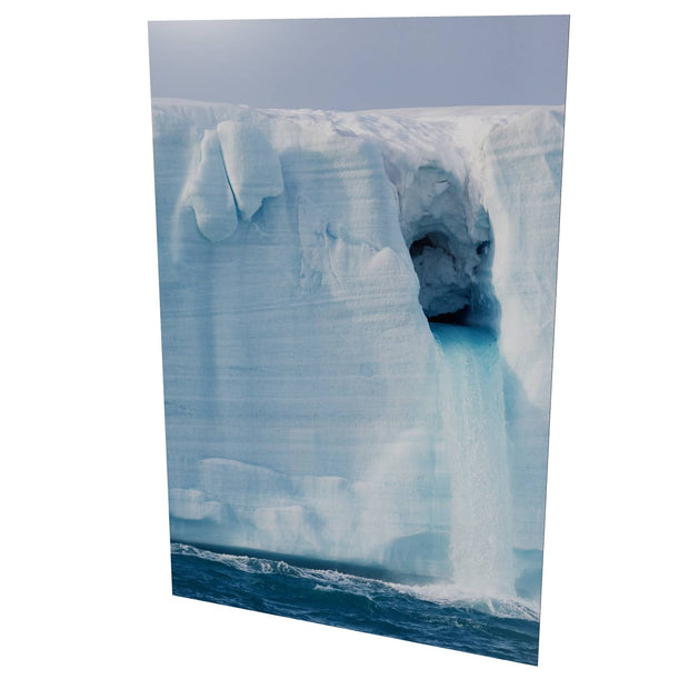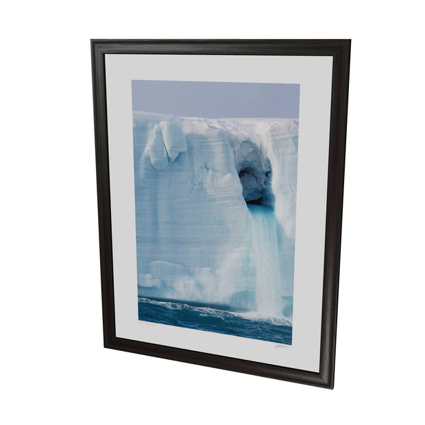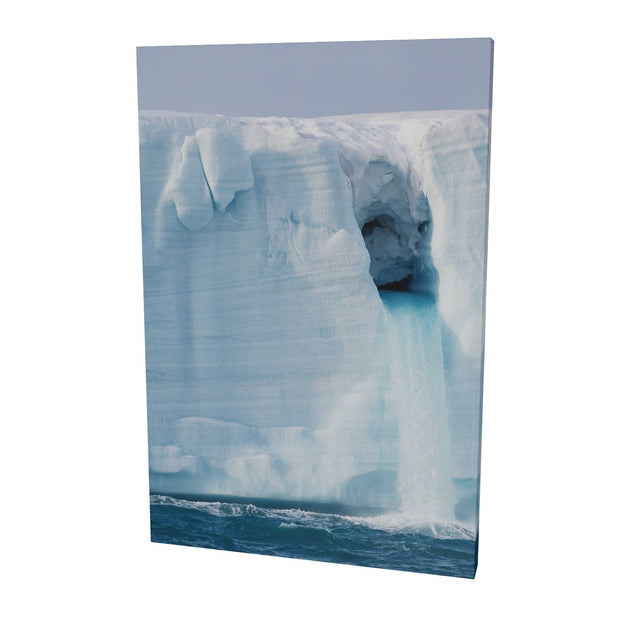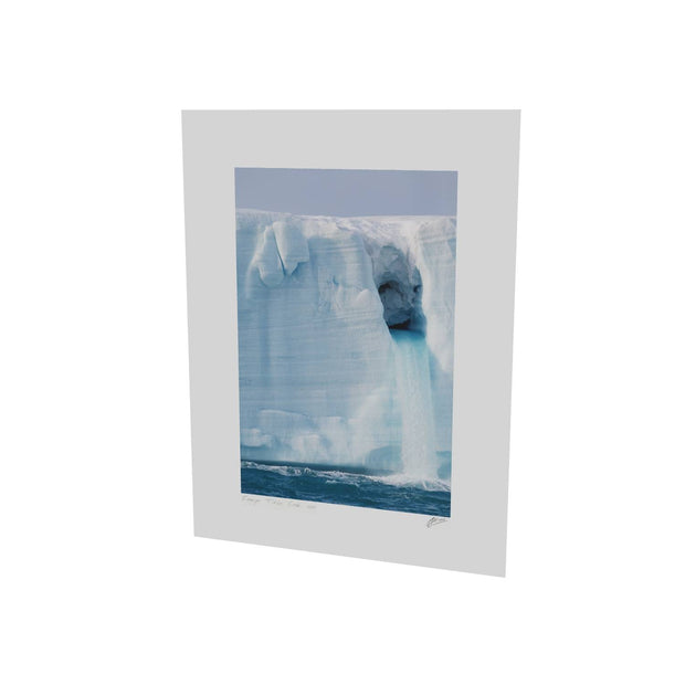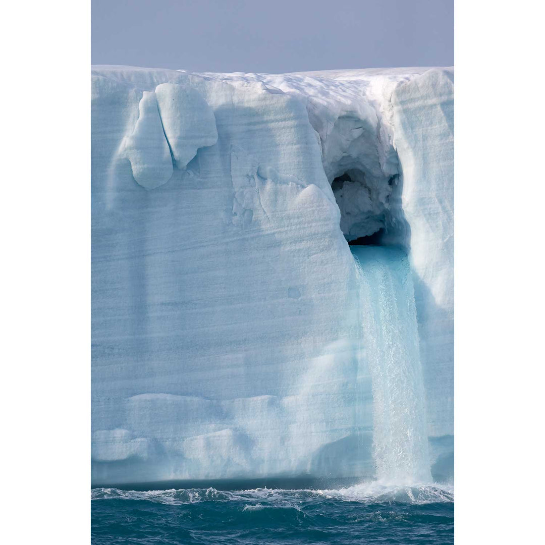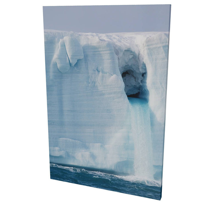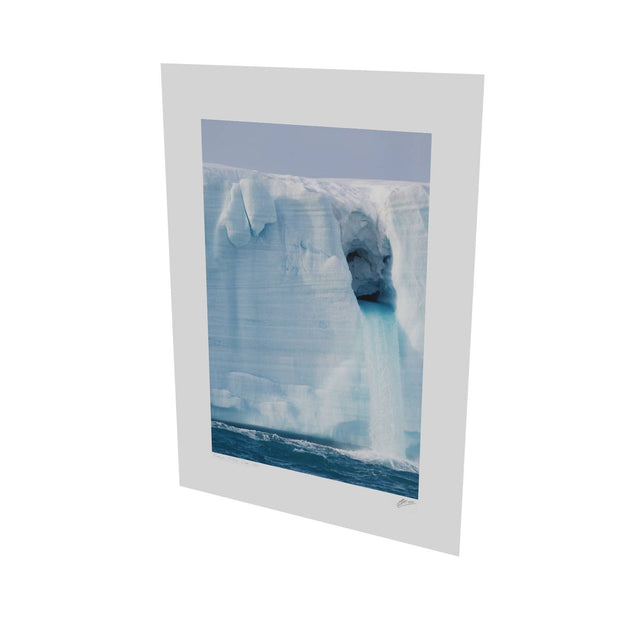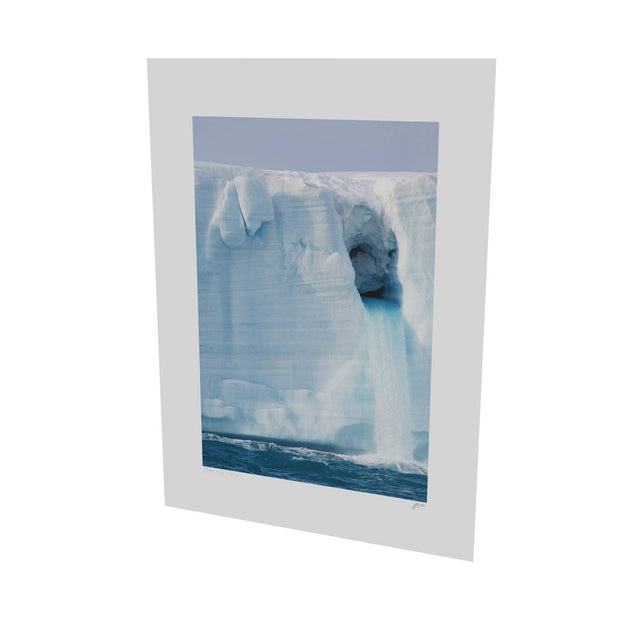 In this captivating photograph, meltwater cascades from the "mouth" of a glacier in Svalbard, creating the illusion of an ice giant exhaling. The sheer scale and delicate blues of the ice evoke a sense of wonder. Imagine how this striking image would transform your space, bringing the raw beauty of the Arctic right into your home.